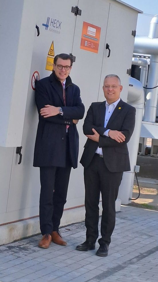 v.l.: Dr. Axel Cunow, SachsenEnergie-Vorstand; Jan Pratzka, Beigeordneter für Wirtschaft, Digitales, Personal und Sicherheit der Landeshauptstadt Dresden
