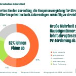 [23.10.2025] Eine deutliche Mehrheit der Eigenheimbesitzer in Deutschland will die Solarförderung beibehalten. Laut einer Umfrage im Auftrag von Green Planet Energy lehnen 62 Prozent den Plan ab, die Unterstützung für Dachanlagen zu streichen. mehr...
