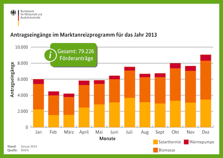 [23.01.2014] Das Bundesamt für Wirtschaft und Ausfuhrkontrolle (BAFA) kann für das Jahr 2013 eine positive Jahresbilanz ausweisen: Rund 160 Millionen Euro wurden für den Einbau modernen Ökoheizungen bereitgestellt. mehr...